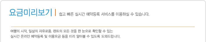 - ‘요금 미리 조회’를 통해 검색하신 차량은 실제 대여